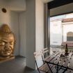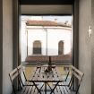 Terrazza con tavolo per 4 persone con affaccio sulla chiesa e sulla via principale del centro storico.