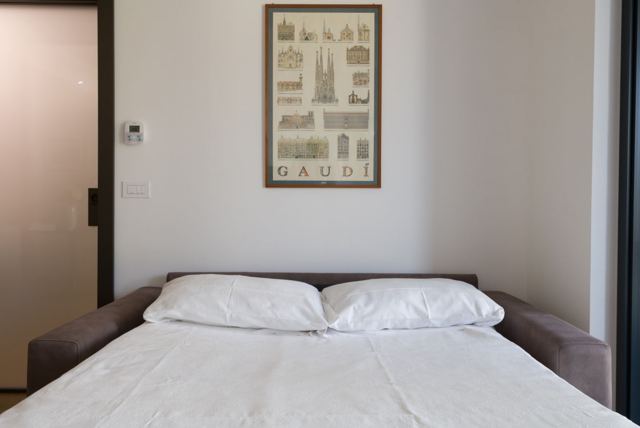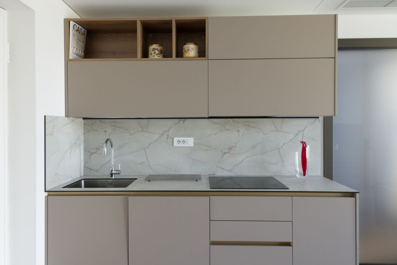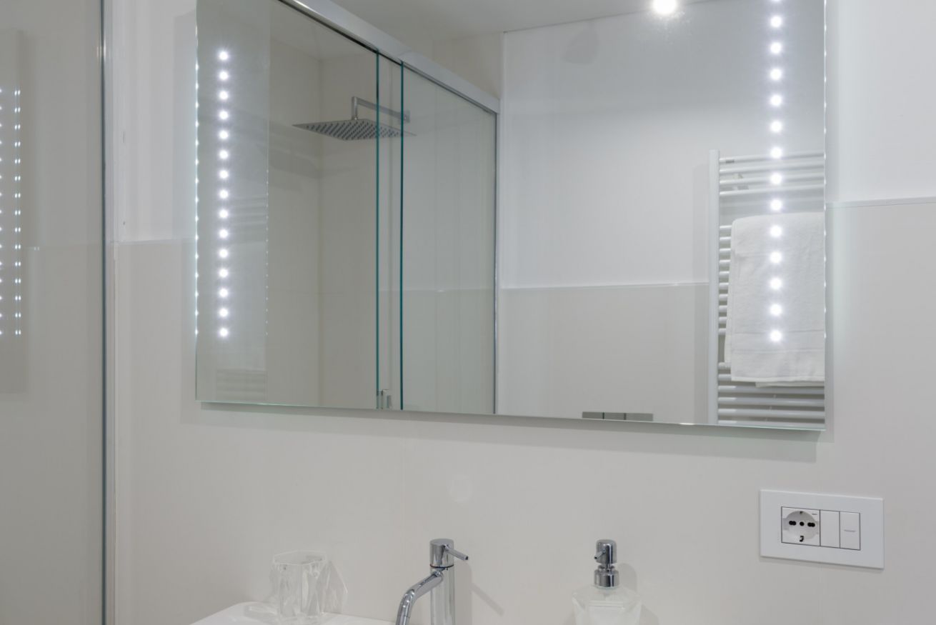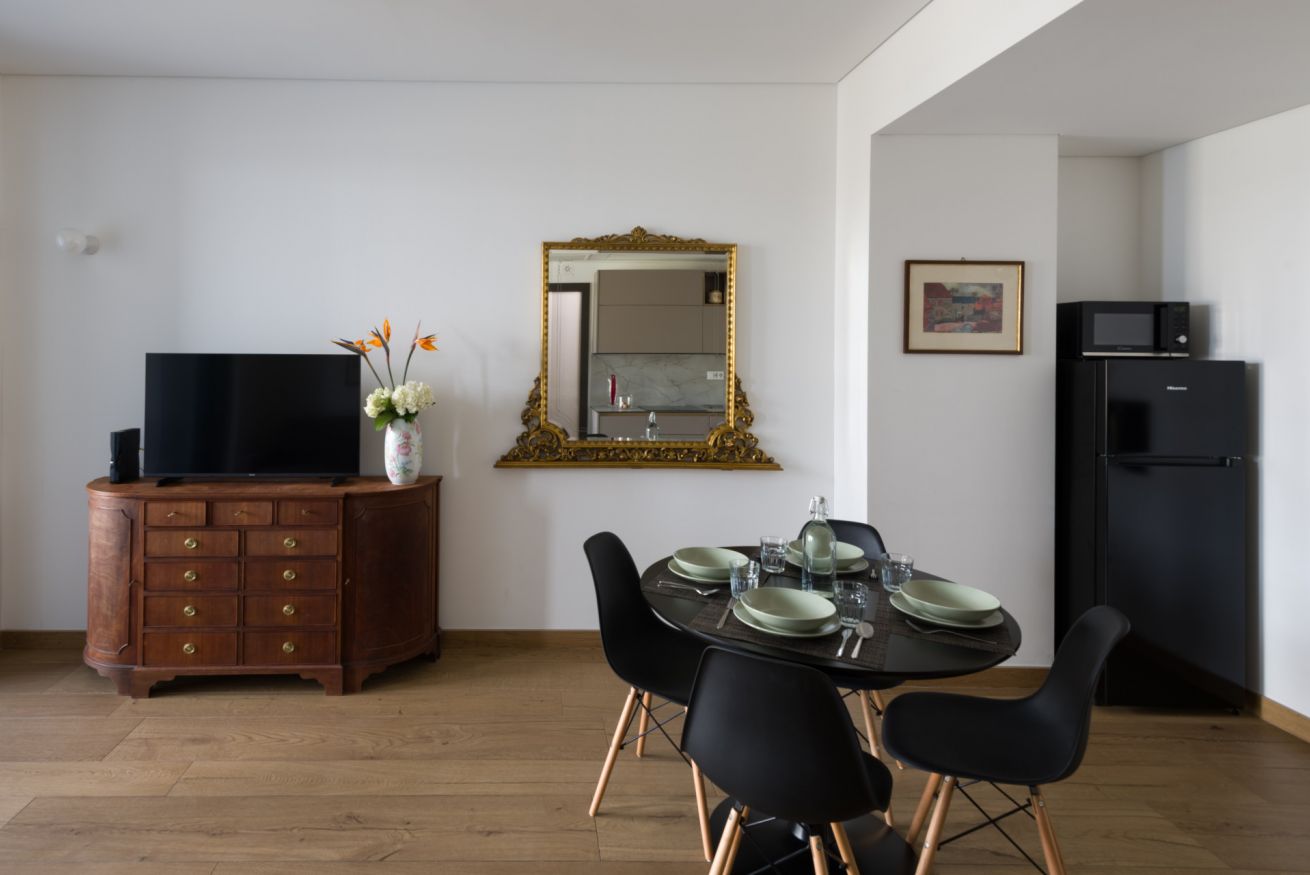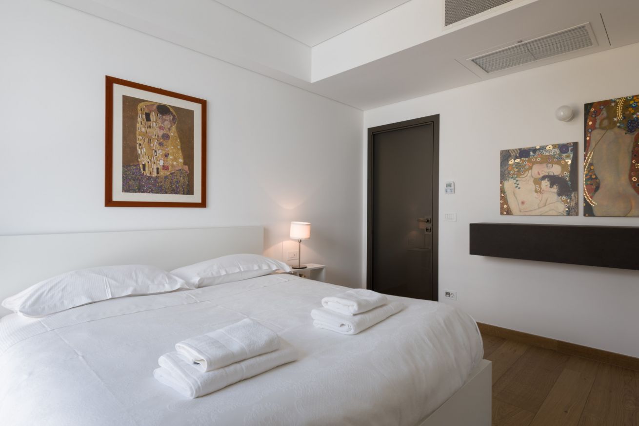 Dotata di armadio capiente, comodini e cassettiera. Ampio soggiorno con divano letto di una piazza e mezzo, televisione tavolo da pranzo. Angolo cottura di design, dotato di piastra ad induzione e lavastoviglie.