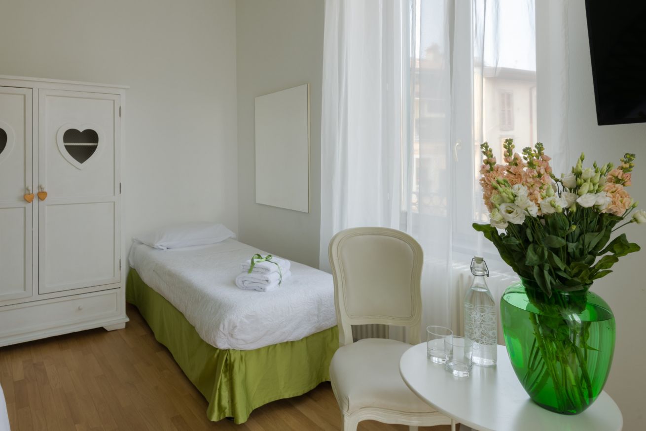 La camera è dotata di armadio, biancheria da letto e balcone con vista sulla città. Le camere del Bergamo Sottosopra sono dotate di TV a schermo piatto. Il bagno in comune con un’altra camera, dotato di finestra e vasca da bagno.